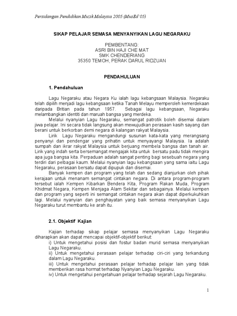 Sikap Pelajar Semasa Menyanyikan Lagu Negaraku Pdf